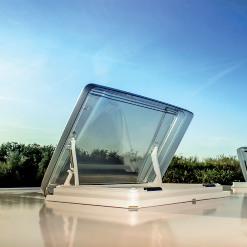 Taklucka Vision Star L 700×500 rökf.glas m. nät,ram vit med byggel